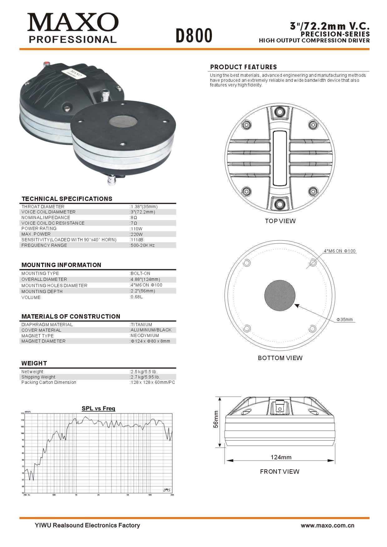 Product Features: Use the best materials, advanced engineering and manufacturing methods have produced an extremely reliable and wide bandwidth device that also features very high fidelity.