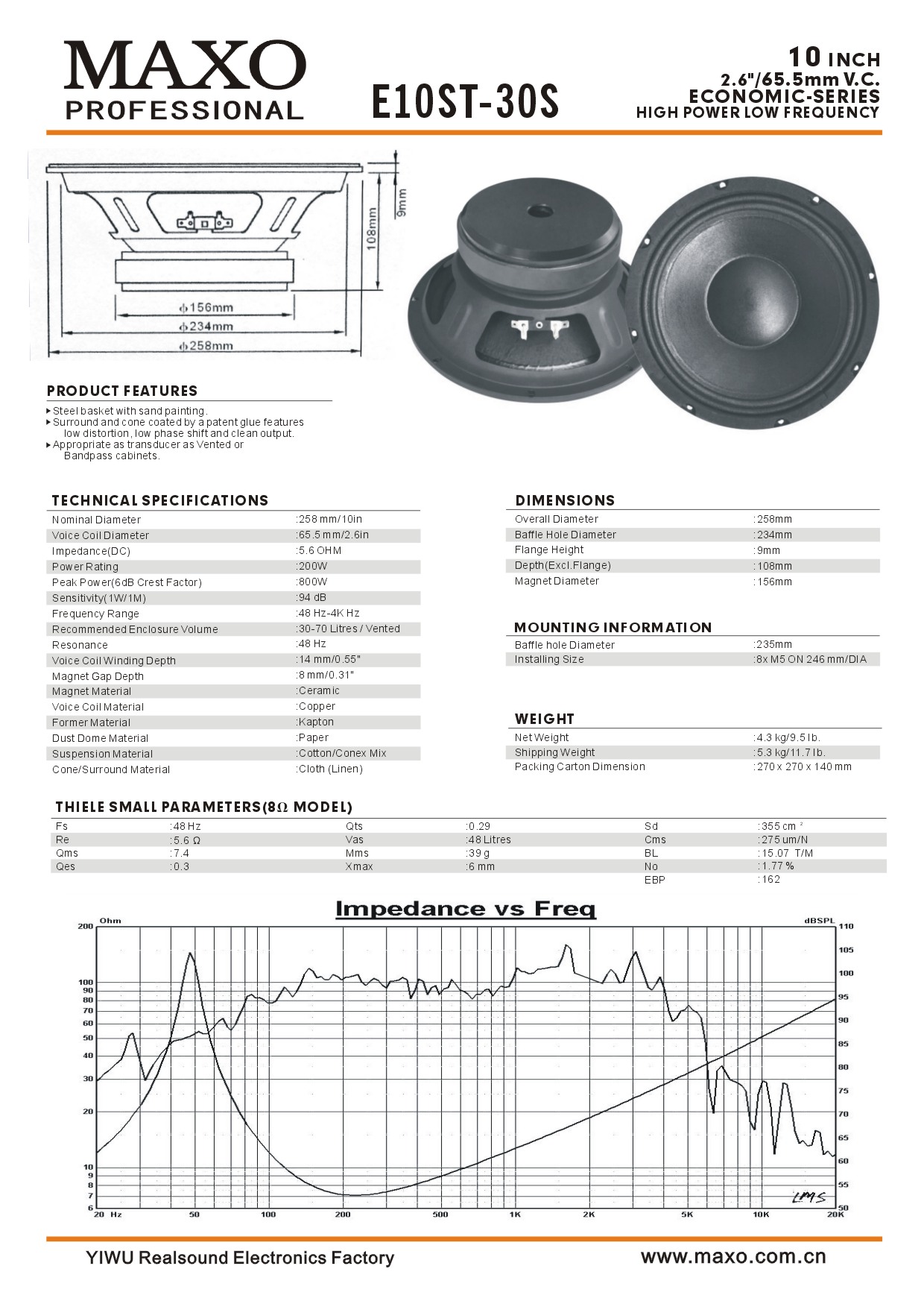 | 258mm/10in | 200W | 65.5mm/2.6in | 94db |