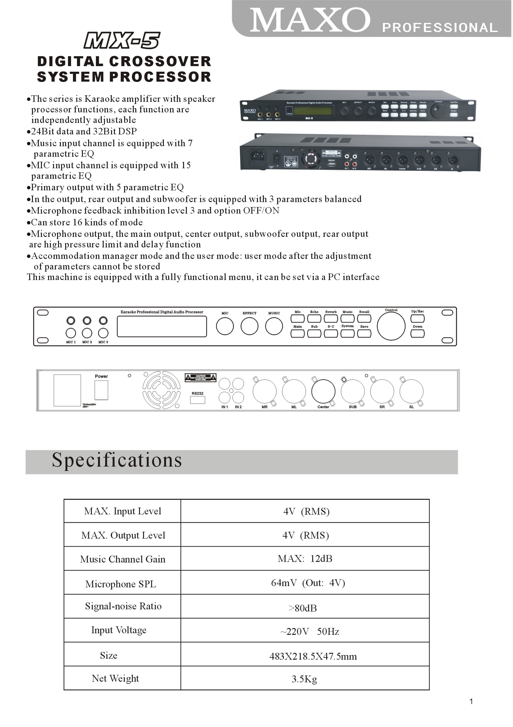 • The series is Karaoke amplifier with speaker processor functions, each function are independently adjustable