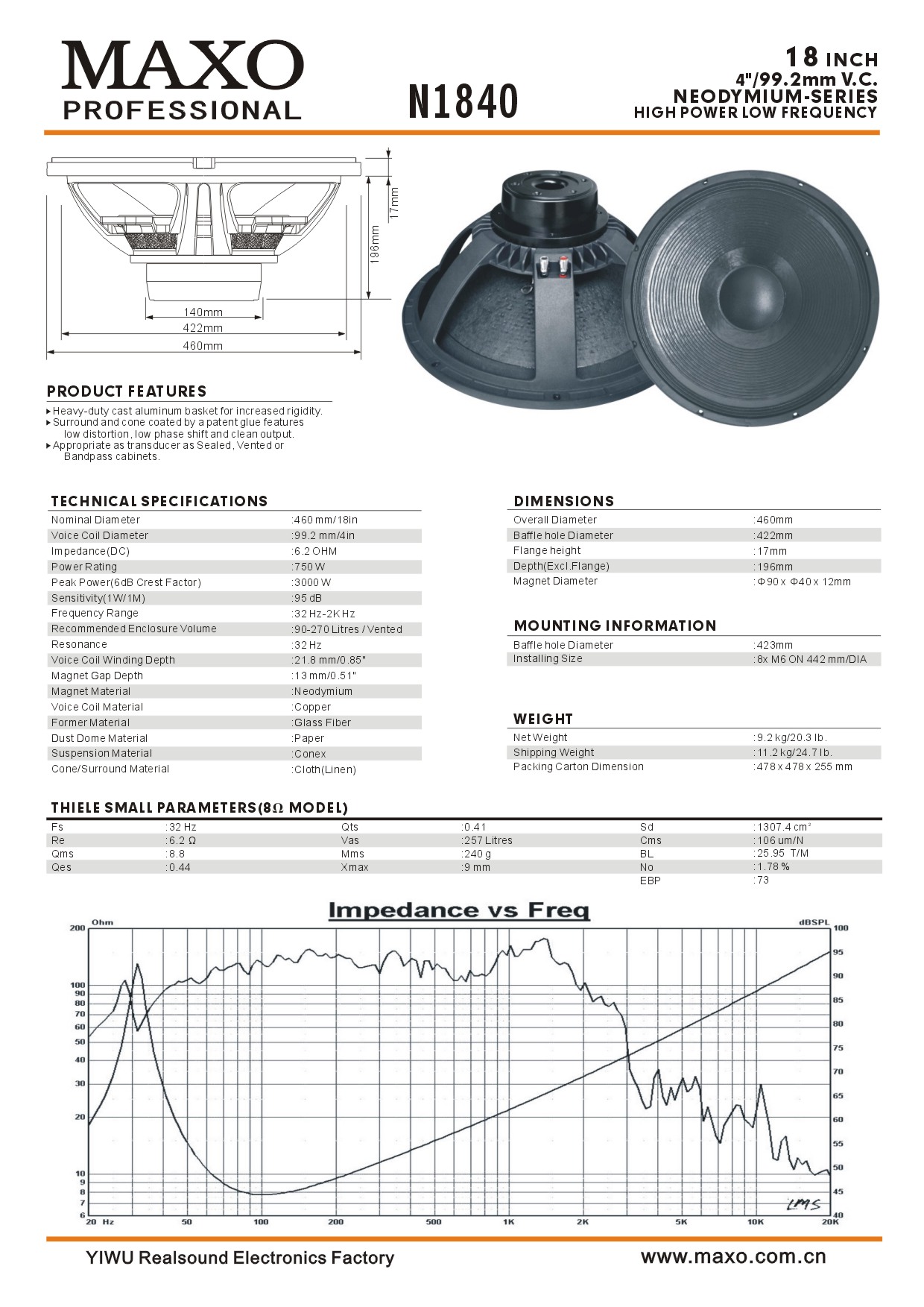 - Surround and cone coated by a patent glue features low distortion,low phase shift and clean output.