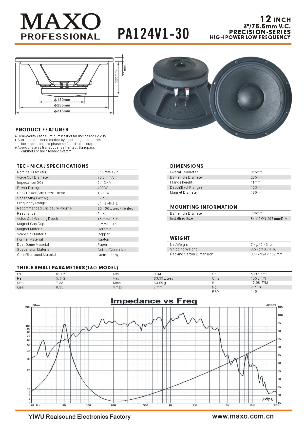 - Surround and cone coated by a patent glue features low distortion,low phase shift and clean output.