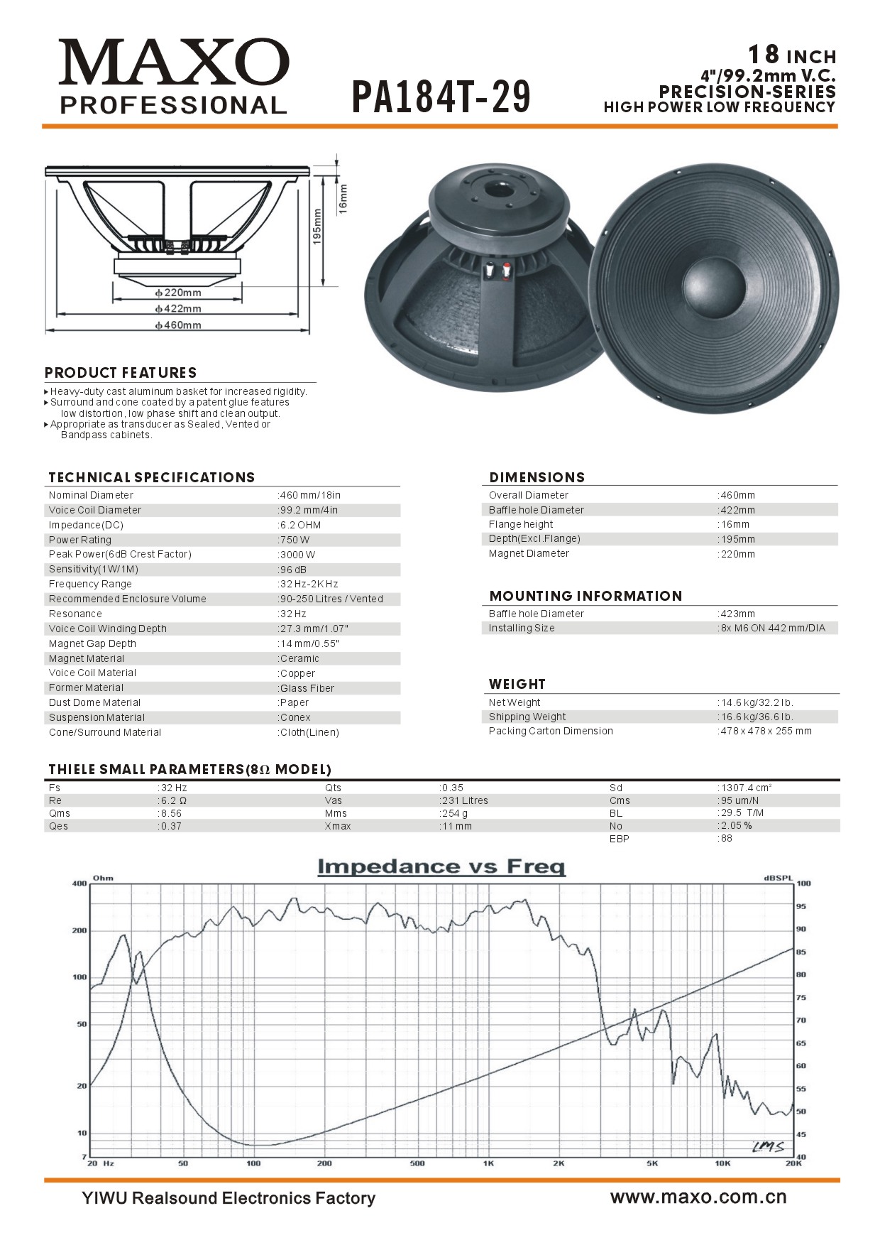 - Surround and cone coated by a patent glue features low distortion,low phase shift and clean output.