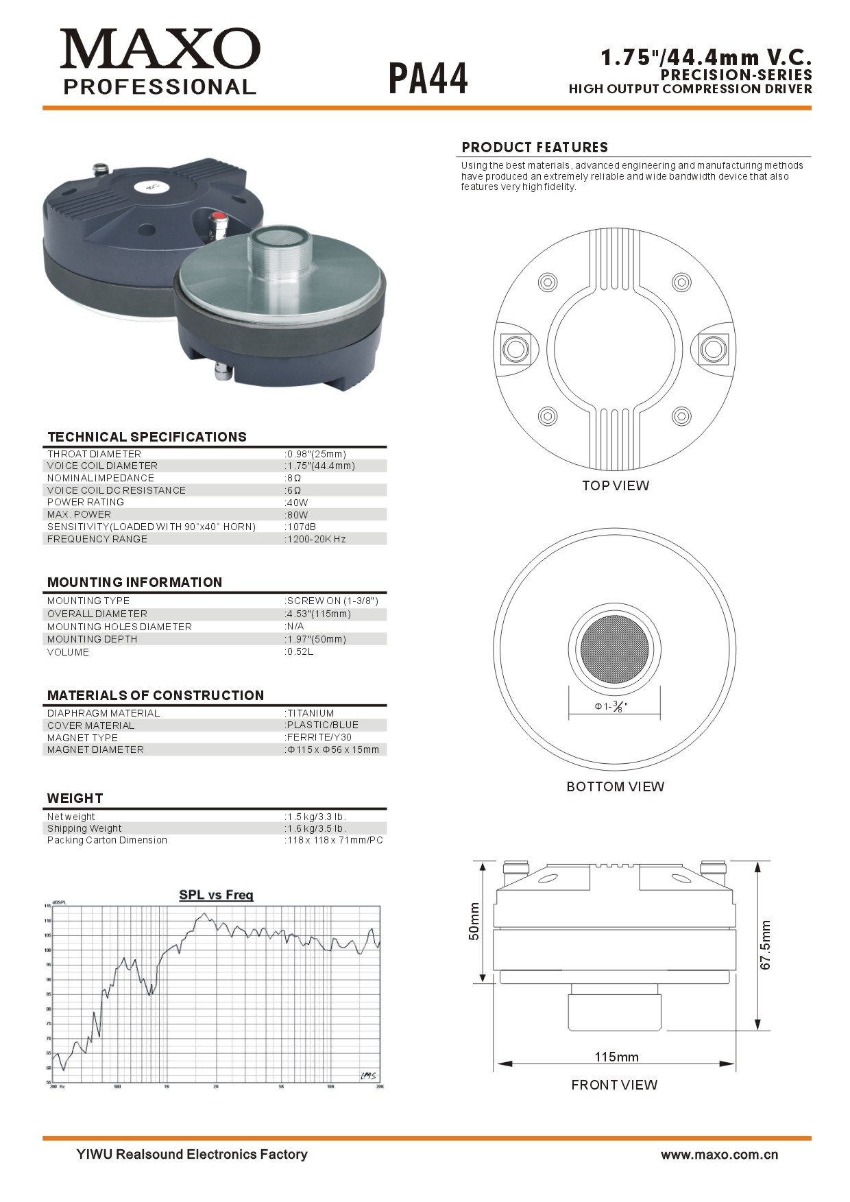 44.4MM V.C HIGH OUTPUT COMPRESSION DRIVE