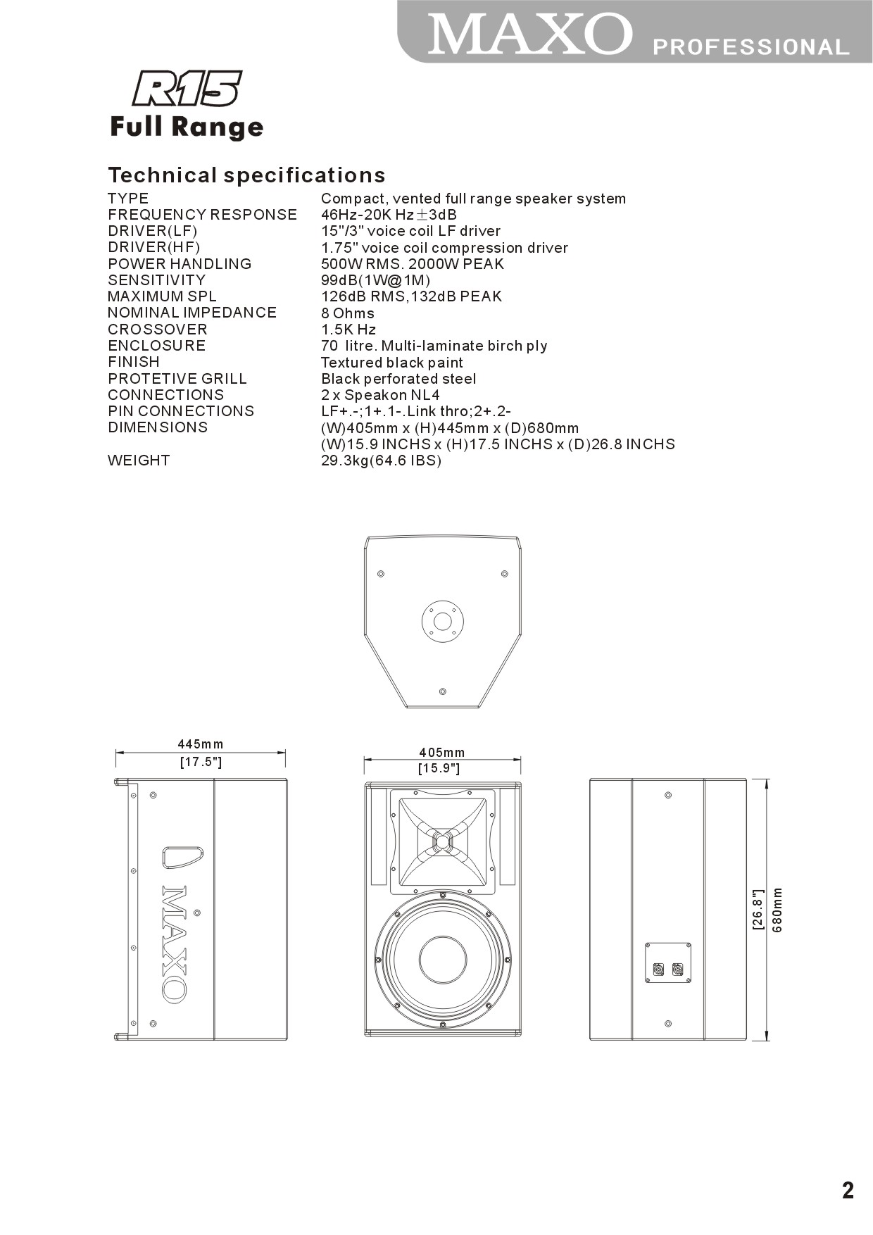 | MAXIMUM SPL | : | 125 dB RMS 131 dB PEAK |