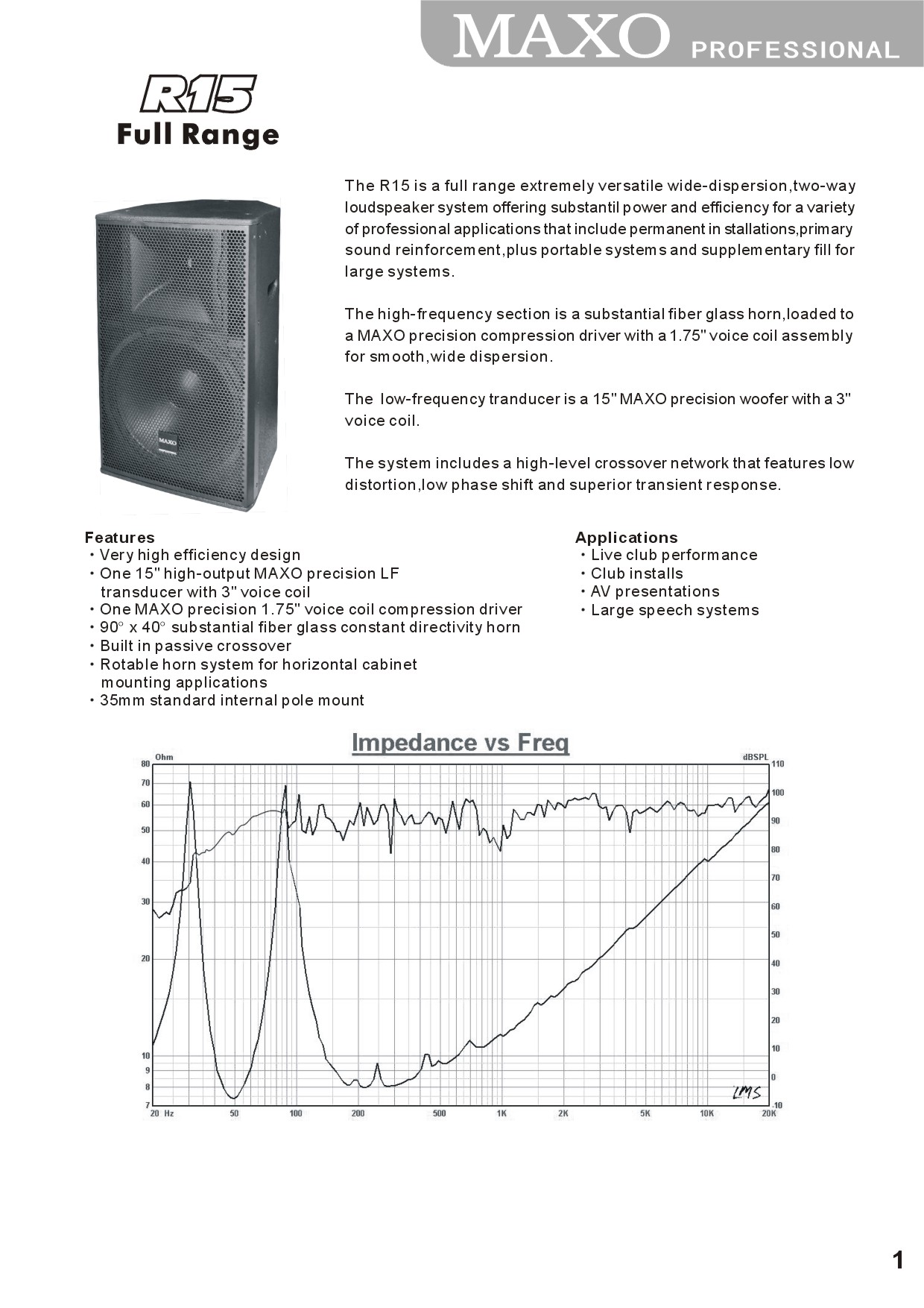 | MAXIMUM SPL | : | 126 dB RMS 132 dB PEAK |