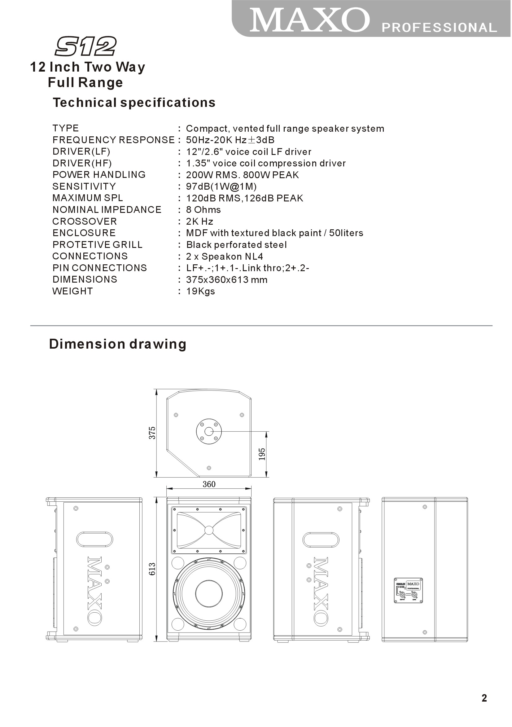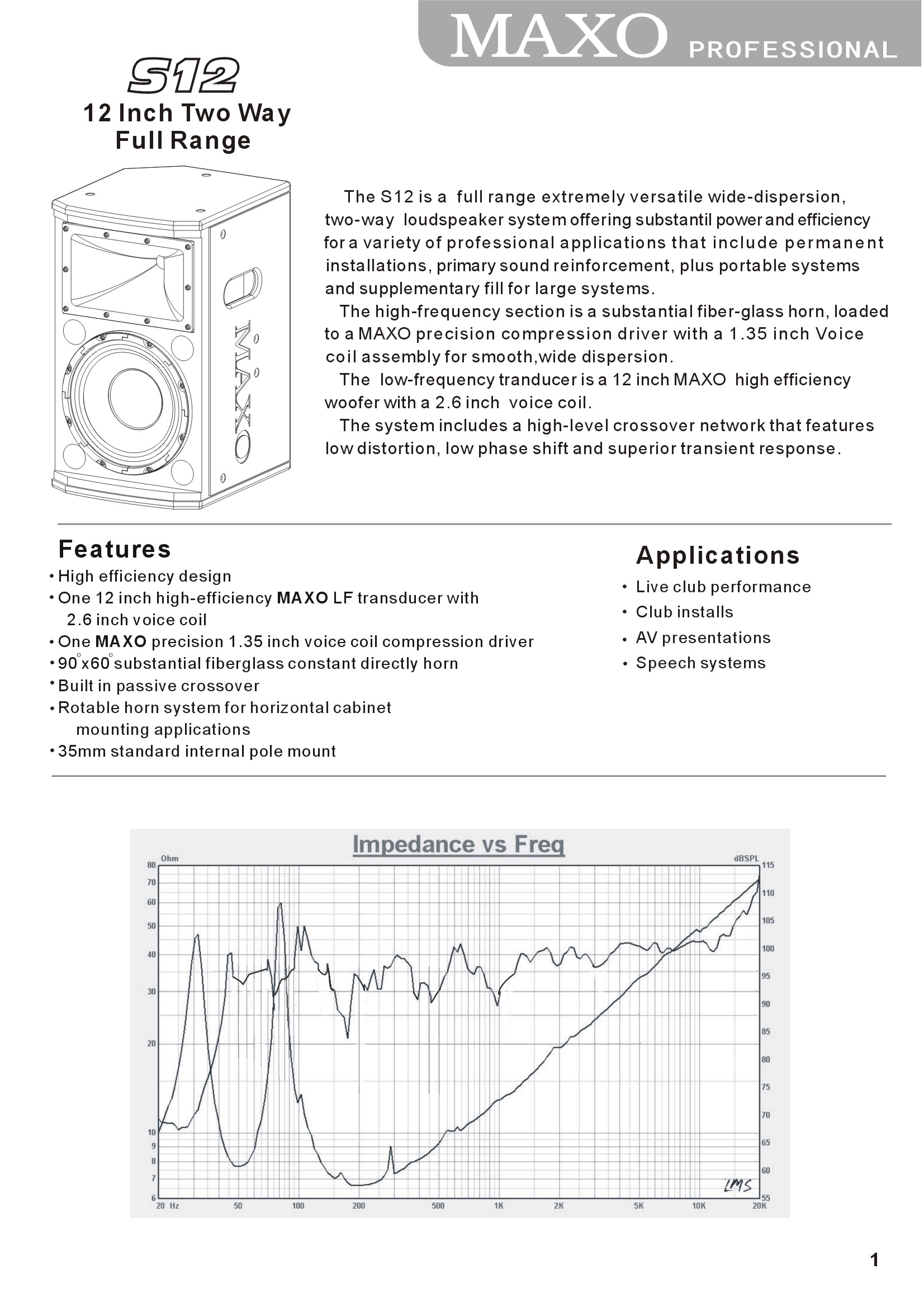 | DRIVER(LF) | : | 12″/2.6″ voice coil LF driver |