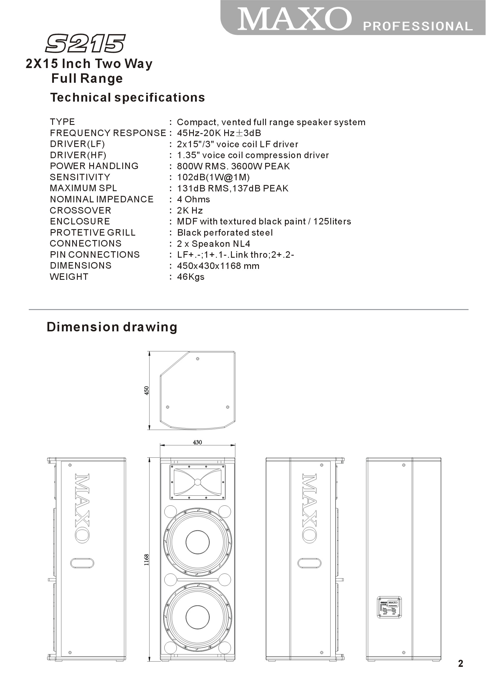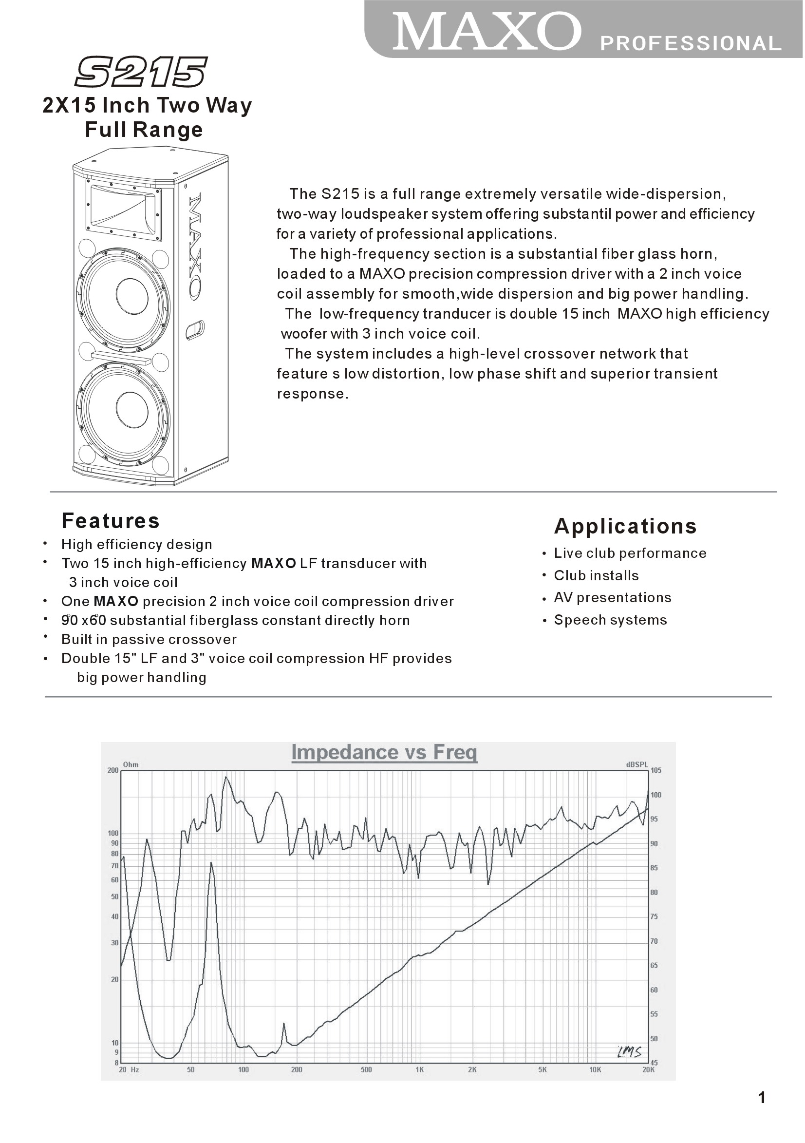 | DRIVER(LF) | : | 2X15″/3″ voice coil LF driver |