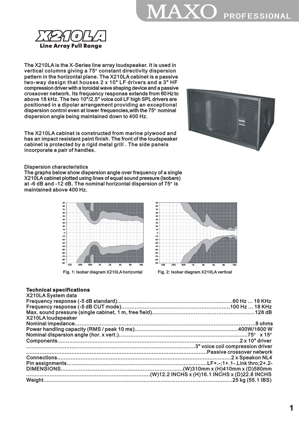 | MAX. SOUND PRESSURE(single cabinet,1m,free filed) | : | 128 dB |